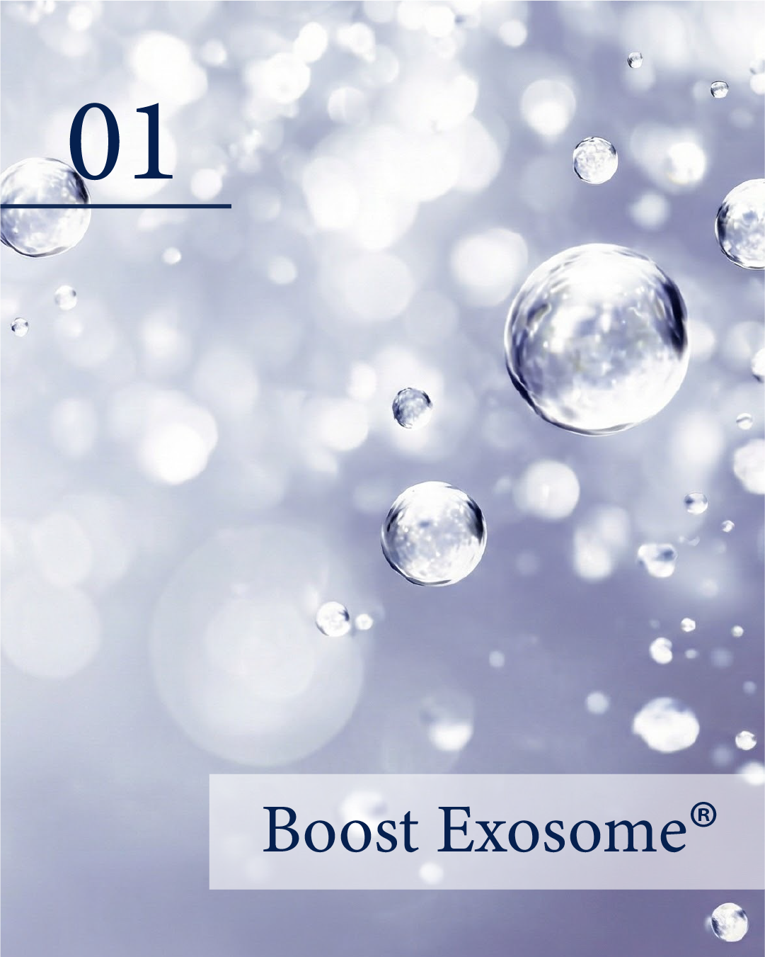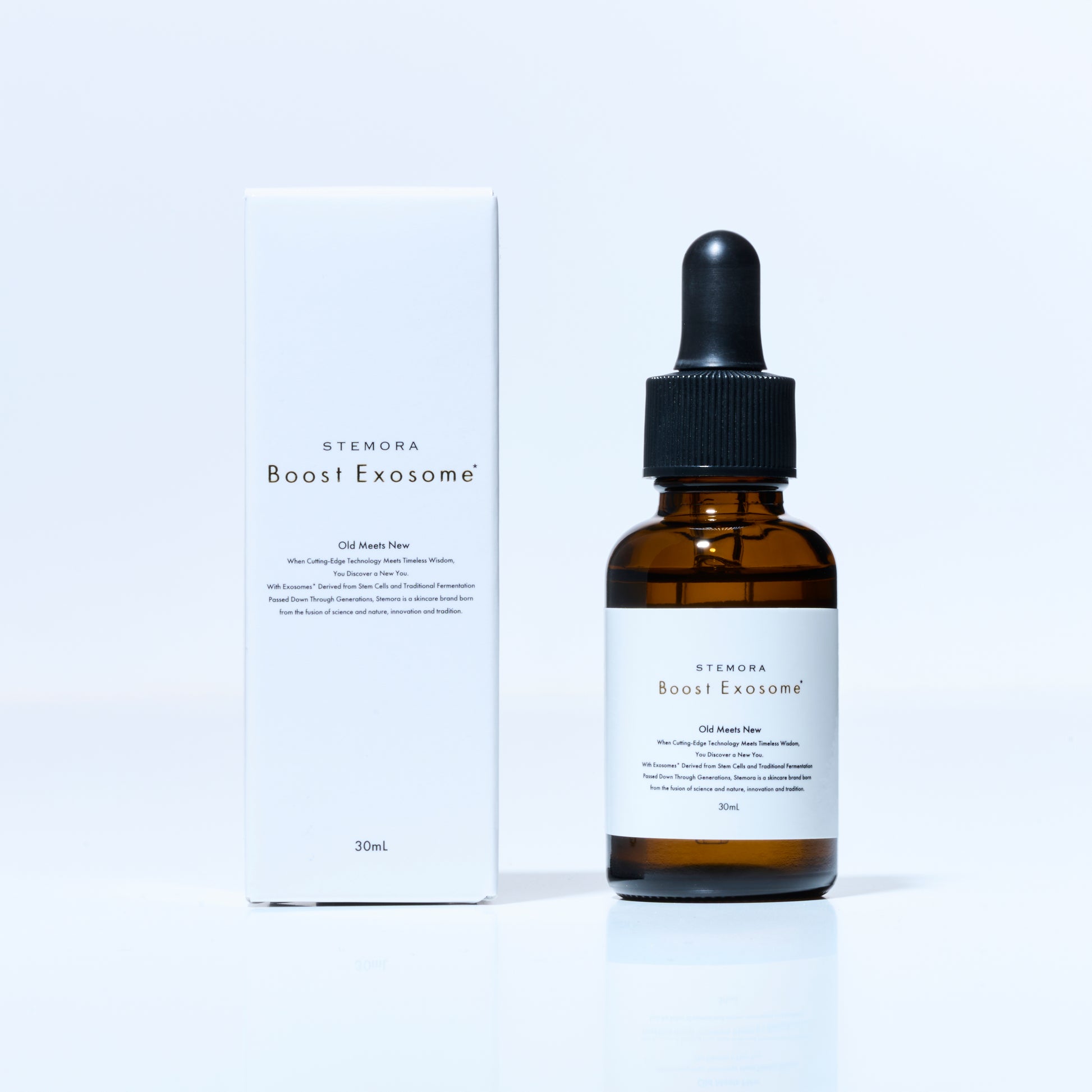STEMORAでは、脂肪由来と臍帯由来の2種類のエクソソームを、独自技術により効果を最大限に発揮できる最適な分量で配合した「Boost Exosome」を採用しています。